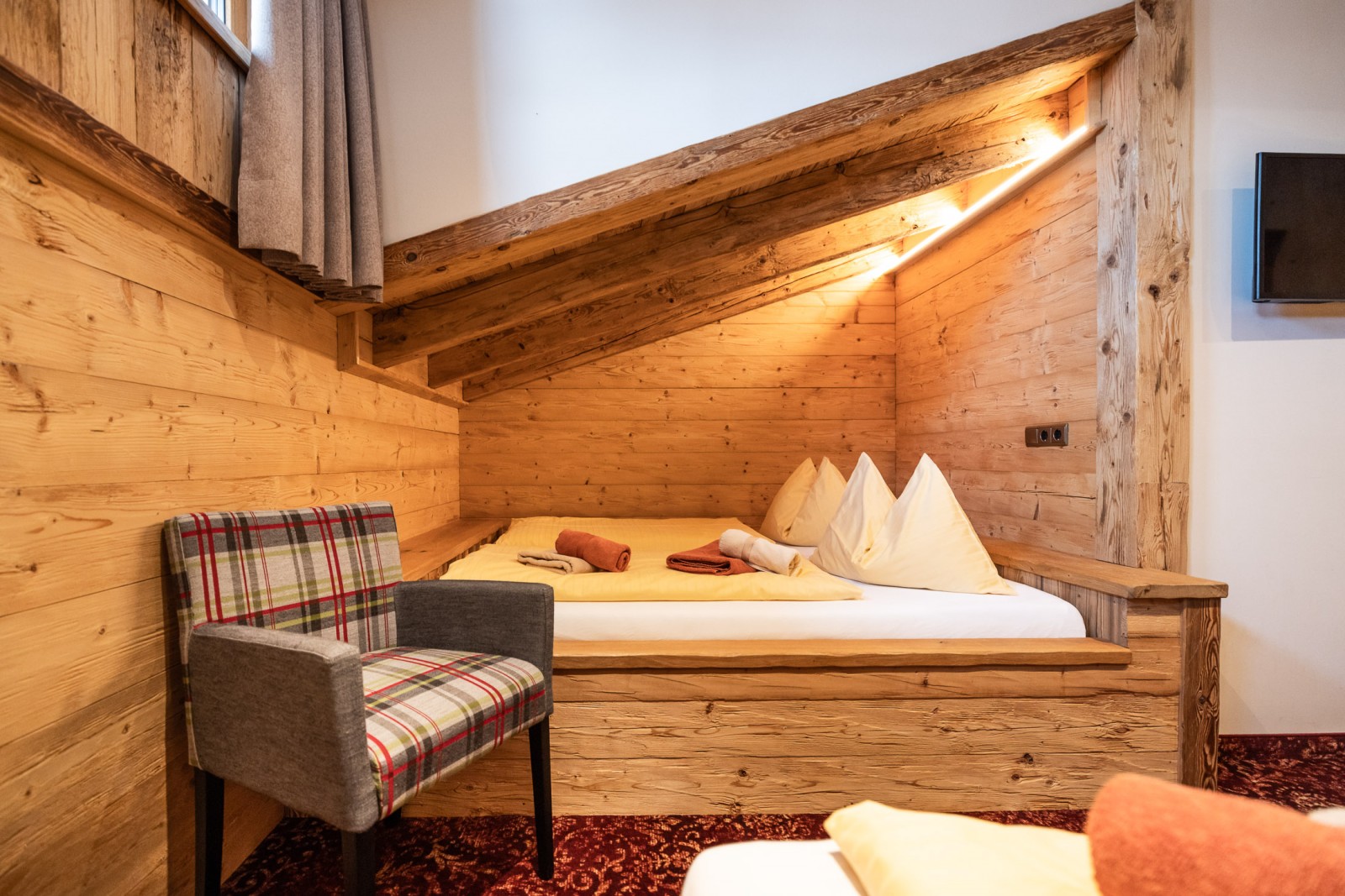 Das neue Hofchalet erstreckt sich über zwei Etagen und ist perfekt geeignet für Familien. Im oberen Geschoss ist eine moderne Galerie verbaut.